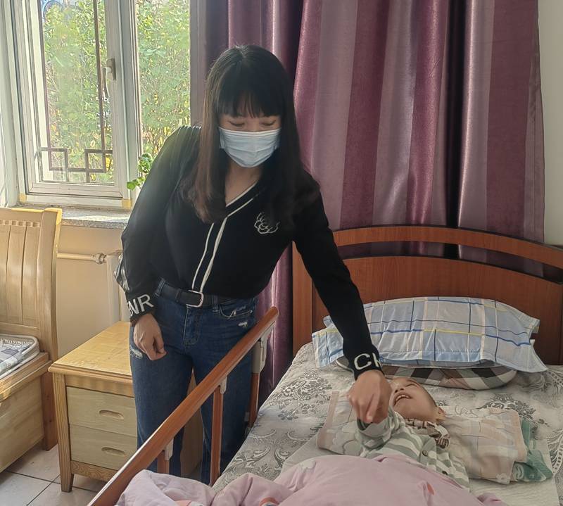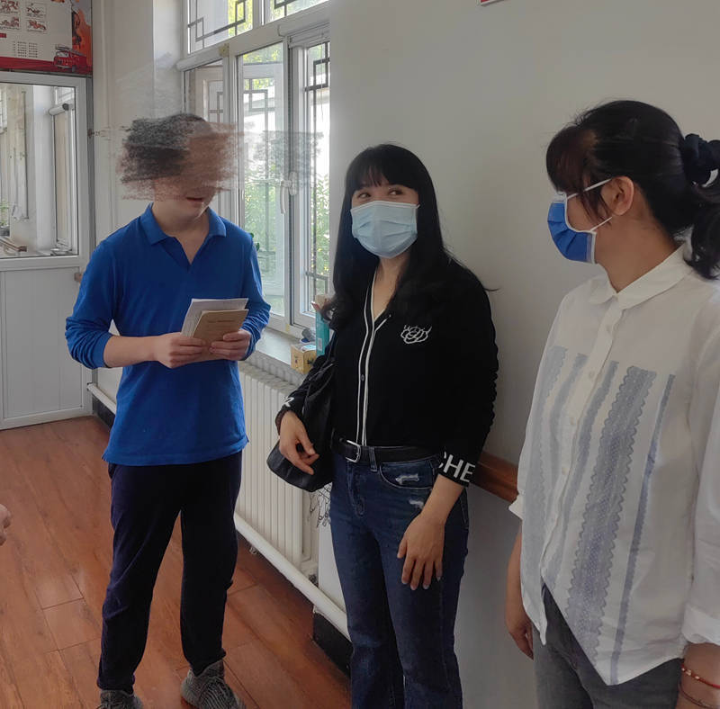 在中心里,孩子们得到了精心护理与照顾,孩子们脸上洋溢着笑容,给大家分享了他们的学习与生活,其中一个唐氏综合症男孩拿着他的作业本告诉大家,他会写很多英语字母及单词, 说这里的院长和阿姨对他们都很好,生活得很快乐。
