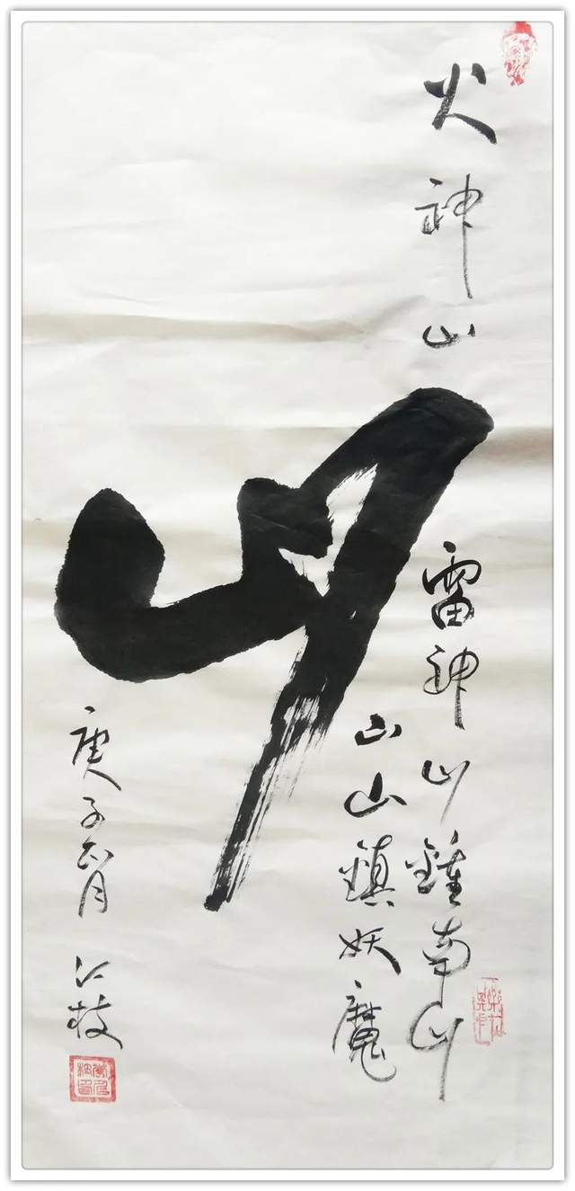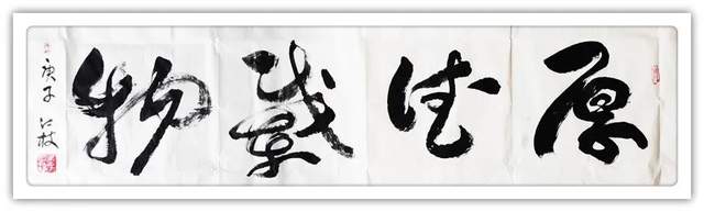 其书法直取自然万象入书,大气磅礴,匠心独具。其作品大开大合而不失肃穆儒雅,潇洒飘逸而不失浑厚稳重,痛快淋漓而不失规矩法度,实可谓动中寓静,以静致动,静以动美,动因静生,妙趣无穷,苍劲有力,气度非凡,美不胜收,有滚滚风云一泻千里之势,自成一体。