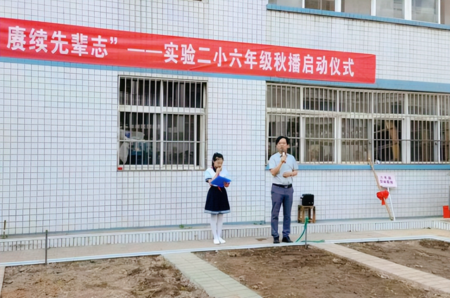俗语道“秋分早,霜降迟,寒露秋种正当时。”立德树人,劳动为先,为进一步发挥学校劳动实践基地的育人功能,致力于培养学生适应新时代发展的核心素养,达到以劳强体、以劳增智、以劳树德、以劳育美的实效性,9月30日上午,实验二小六年级师生在校内的劳动基地举行了“喜迎二十大 赓续先辈志”2022年秋播启动仪式。