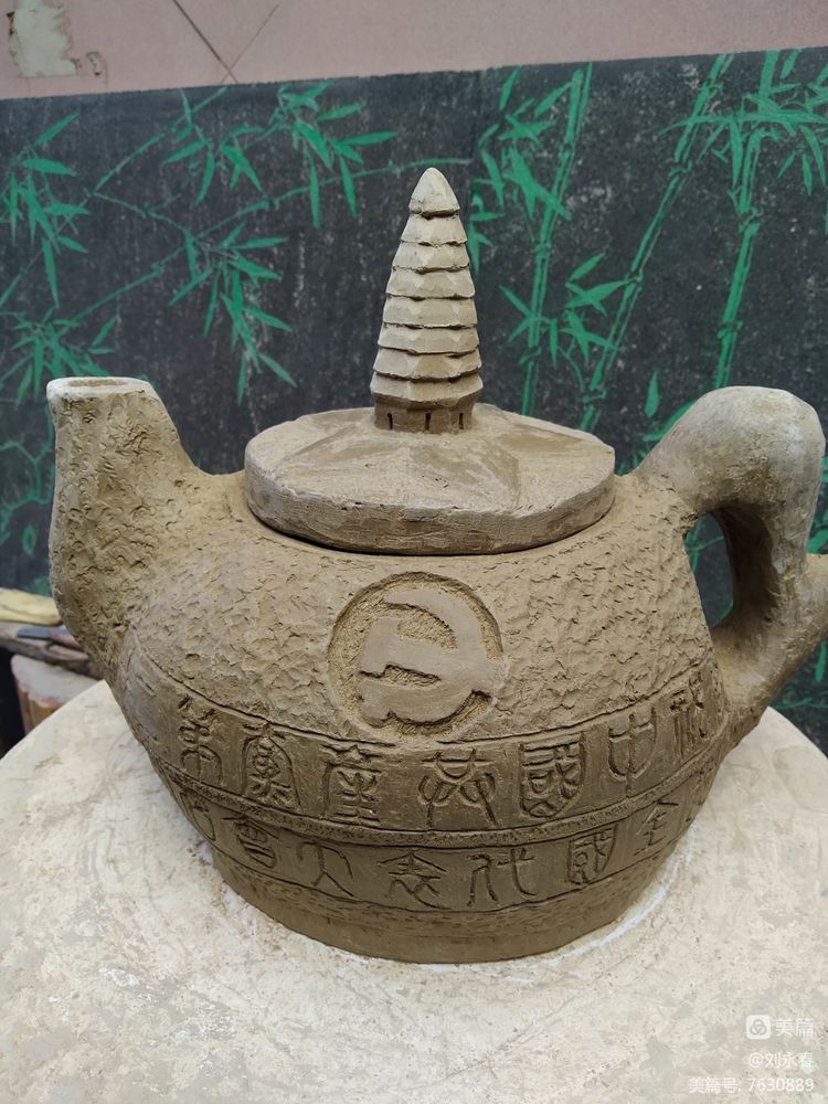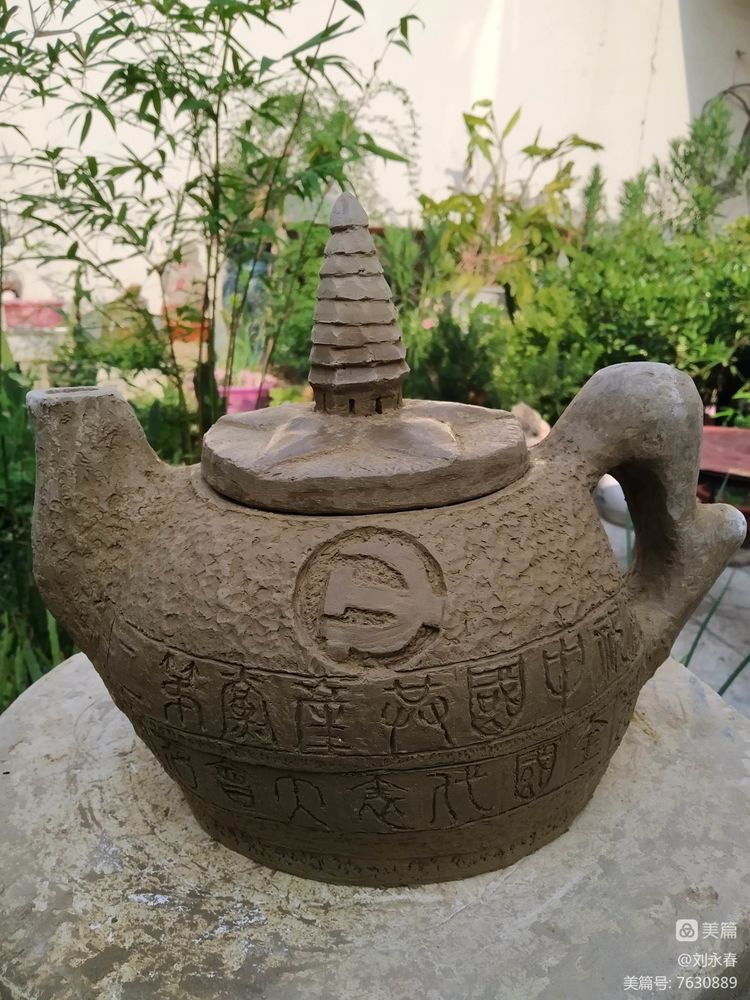 党的二十大召开在即,笔者静心构思,几经设计,雕塑一把“党壶”,以献厚礼。