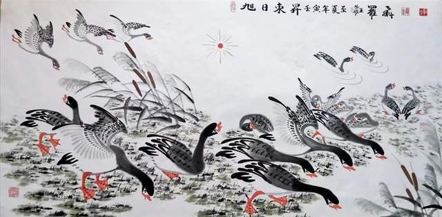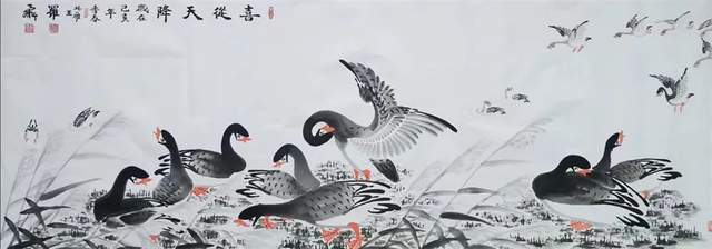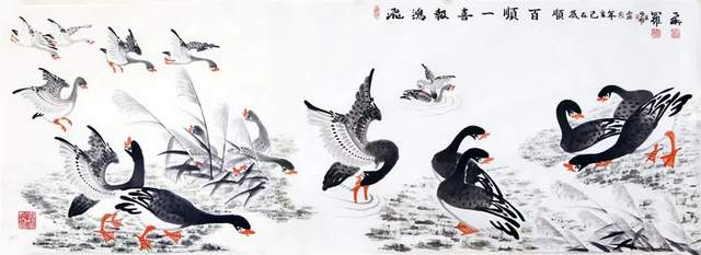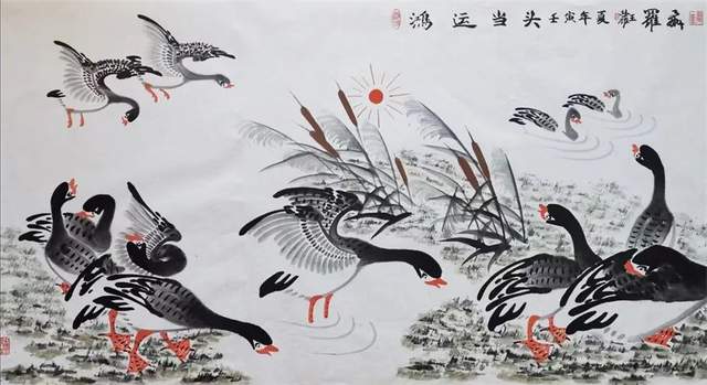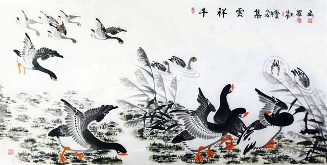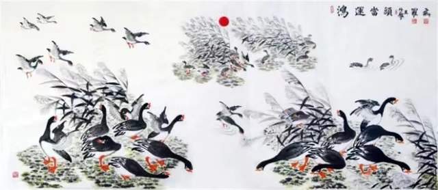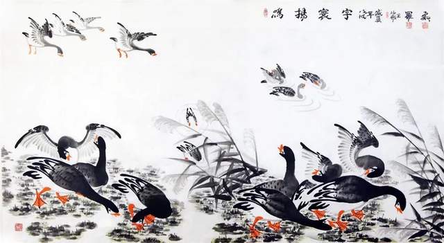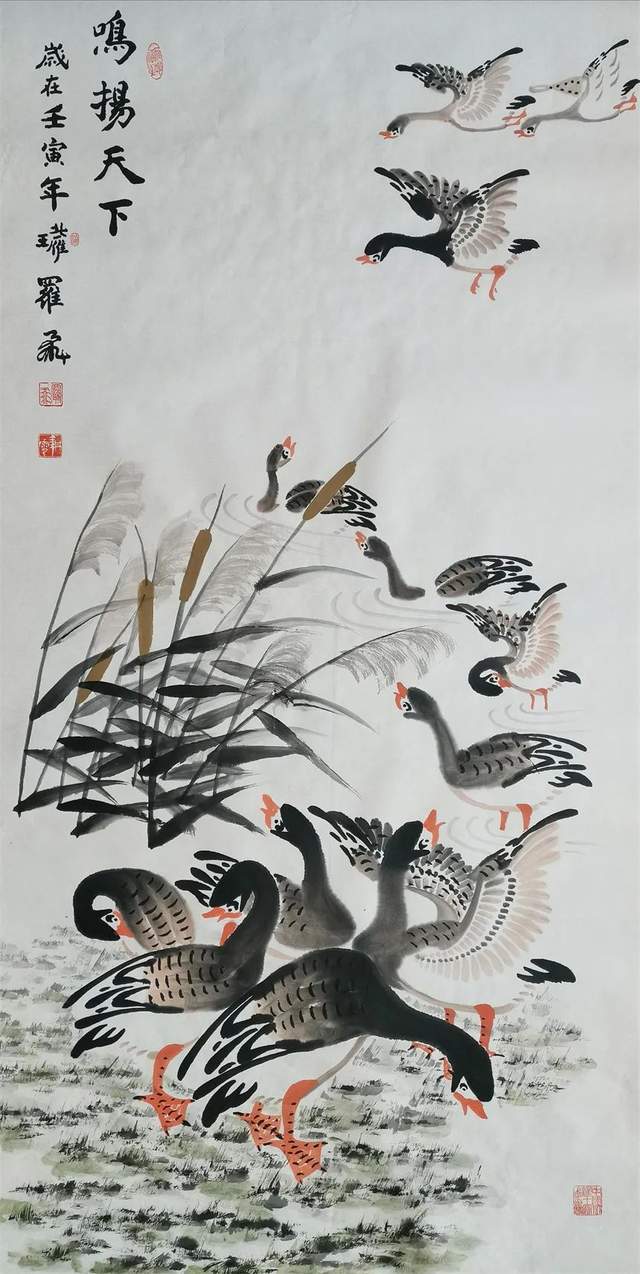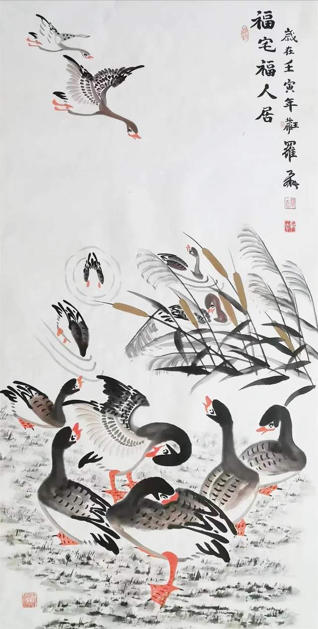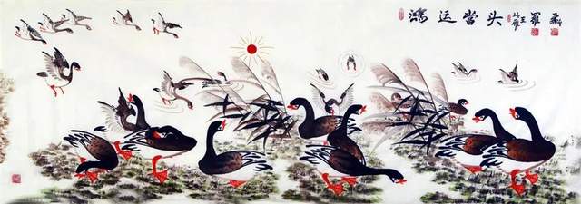 中华人民共和国国宾礼特供艺术家罗维存以专绘鸿雁著称当今画坛,他笔下的鸿雁如仙女下凡神态各异、食宿飞鸣、千姿百态、栩栩如生、神韵十足,表现出极大的生命力。北雁王・罗维存为人处事淡泊名利、重义情深、书生意气,学者风范。他的鸿雁作品让人心旷神怡。