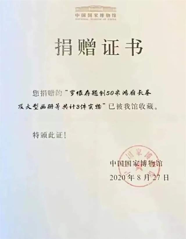 罗维存先生,笔名罗飞,号耕云、雁鸣斋主,号古稀雁翁,毕业于中国书画函授大学。国家一级美术师、号称北雁王。现任辽宁美术家协会会员、沈阳市美术家协会会员、亚洲书法家联合会理事,中国世纪大采风书画院副院长、中国国画院副院长、中国书画收藏研究院理事。中国文学艺术工作者联合会副主席。作品多次被邀请赴美国、巴西、俄罗斯、新加坡、韩国、日本和港台地区画展,获“世界美术大奖勋章”及“二十世纪中日书画名匠勋章”。2008 年6月在辽宁凤凰饭店举办个人画展。2008只栩栩如生的鸿雁50米长卷献礼北京奥运获得轰动、影响深远,得到国内外书画界同行和专家的赞赏,好评如潮。荣宝斋(沈阳店)文物鉴定专家组组长,北京三希堂国际拍卖有限公司高级,鉴定专家顾问书法大师,书画鉴赏家。王梦赓老先生为北雁王;罗维存2008年创作的2008只鸿雁50米长卷,题跋鉴定为国宝级传世珍品;中国国家博物馆--捐赠证书,您捐赠的“罗维存题创50米鸿雁长卷及大型画册等共计3件实物”已被我馆收藏。特颁此证!中国国家博物馆;2020年8月27日。中宣部中央电视台颁发:时代楷模・笔尖下的中国奖杯。凤凰网、中国财富头条网、中华网、腾讯网等多家网站给予报道后,国内外诸多博物馆、美术馆及比利时、瑞典、法兰西、英国等皇家画院关注珍藏。