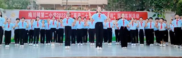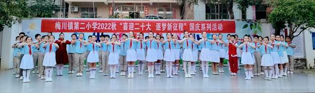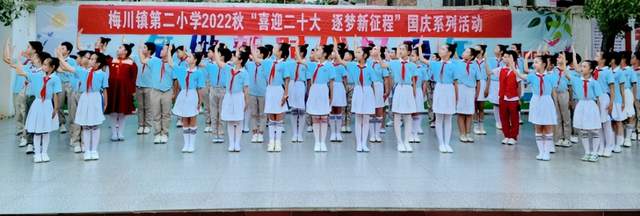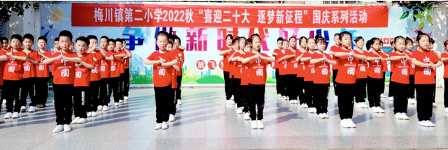 为庆祝中华人民共和国成立73周年,迎接党的二十大胜利召开,厚植红色基因和爱国情怀,增强国家观念,接力中国梦,引领少年儿童一颗童心跟党走,9月30日,梅川镇第二小学举行了“喜迎二十大,逐梦新征程”为主题的庆祝国庆节系列活动。
