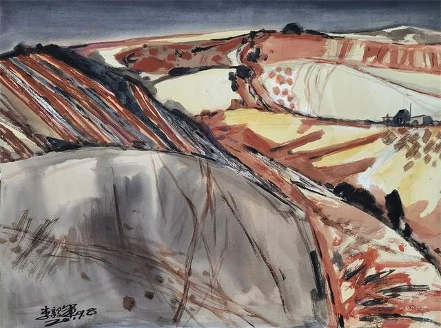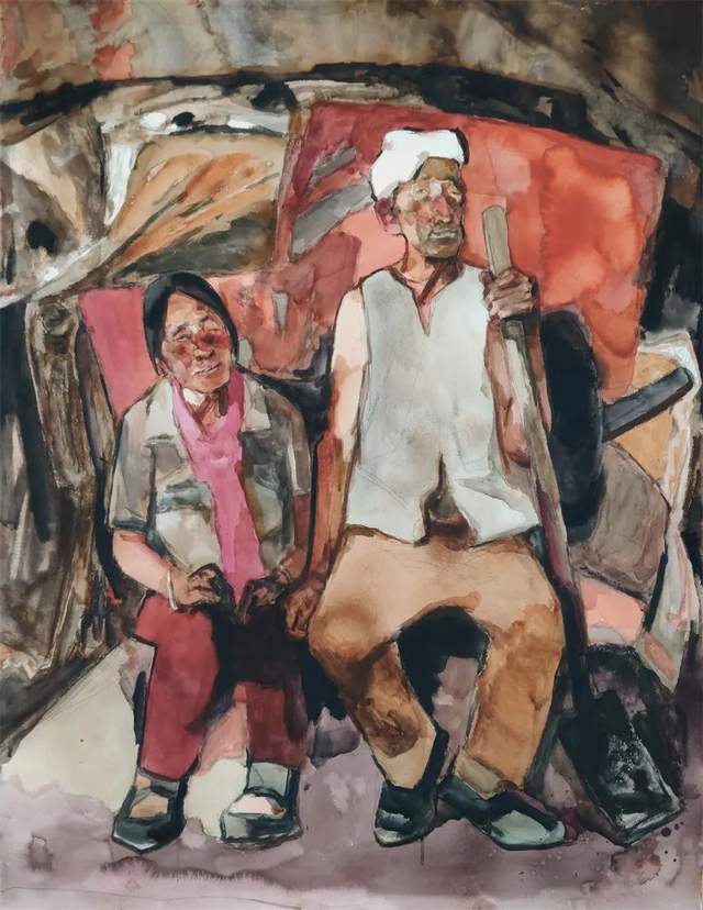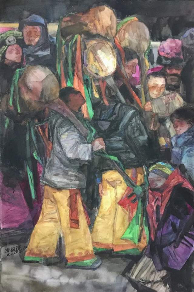 《山丹丹花开》 150cmX110cm水彩画2020年
