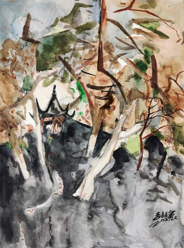 《溪水潺潺》 56cmX76cm水彩画2021年