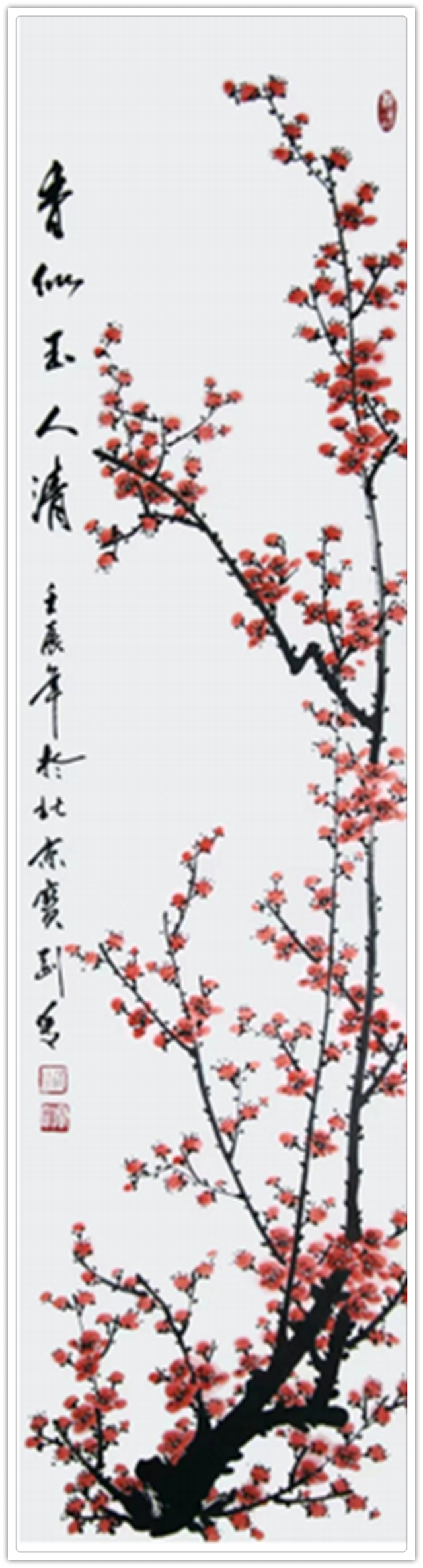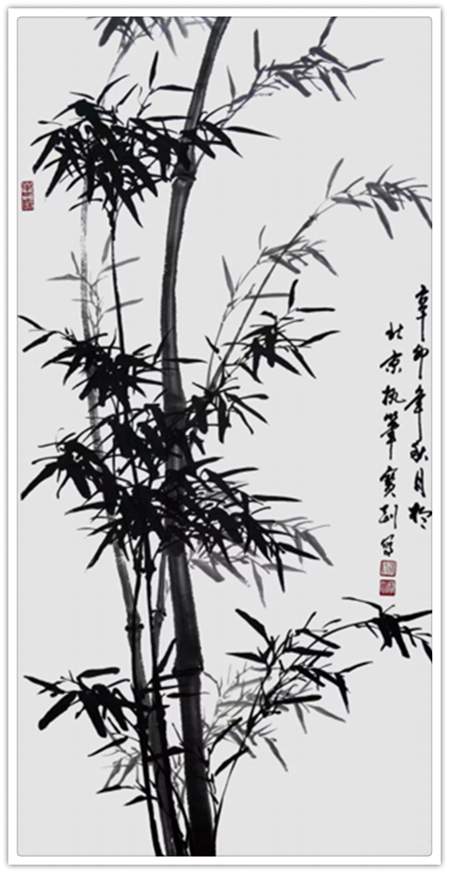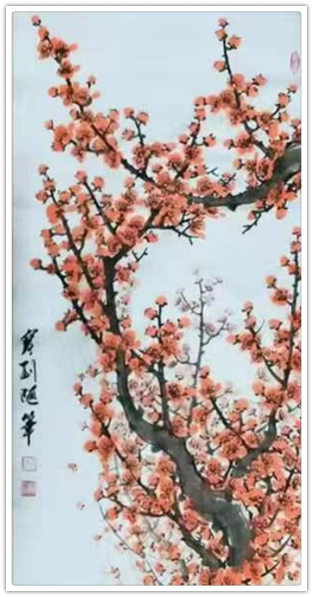 说到山水创作,徐先生最有外师造化中得心源的表现力。青绿山水作得妙,尽有搜尽奇峰打草稿的写生积累。观览真山真水,经由风行雨霁的熏习,可以把心意完全漫泊在山水创作之中,通过笔墨苍润的渲染,构成云上山巅四面俊厚的浩莽之气。上突危峰,下览深谷,空间饱满,满而不塞,以百尺悬瀑作气息联络,可以在骨法用笔的塑造中,生成气韵生动的妙哉。山水安知董与黄,唯有像先生这样师造化,心入画、意入画、诗入画,方可以把山水画的色不碍墨,墨不碍色!苍润之感,恰是天质自然!先生画梅、画竹,取法文人画的萧萧雅趣,画里是娴熟的技法,盈发出来的是君子的品位,雅画梅竹,已经脱离了“物”的束缚,走进了“神”的境界,笔墨所作,色彩所染都是君子人格化的表现。清许劲节,梅雪争春,最有装点万家屏障的地气!