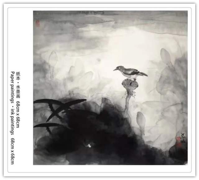 谢汉球的作品在传统与现代之间融入了自己的绘画理念,水墨写意在传中探索实践融合多种水墨技法创造一种新语境。其画语生动彰显出物象的形态与神气,境界超逸,韵雅。