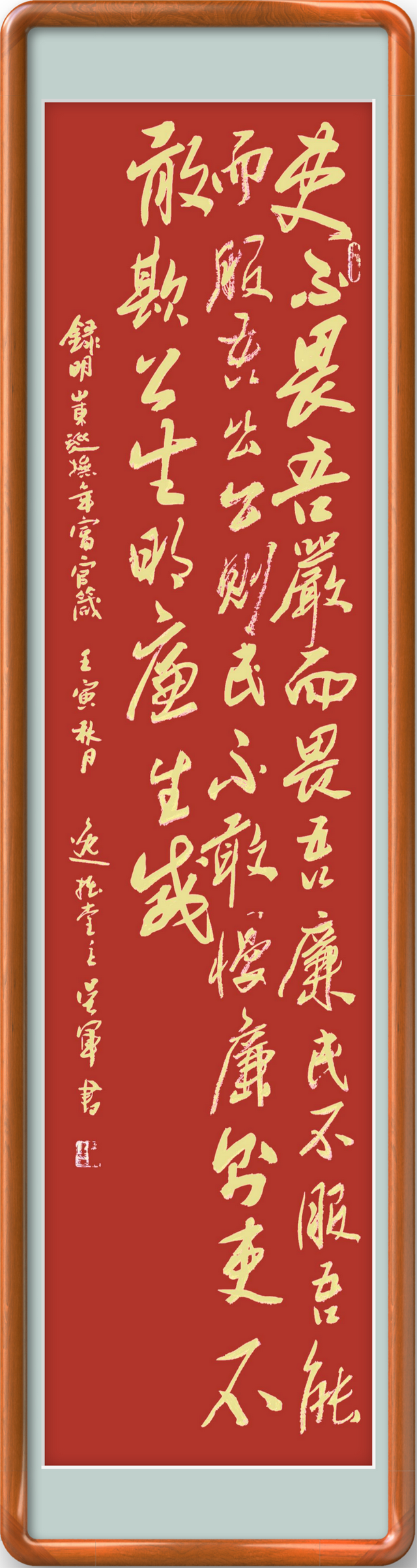 吴军,男,现年62岁,中共党员,退休干部。自幼喜欢书画,从事书法40多年,主攻魏碑、行书。