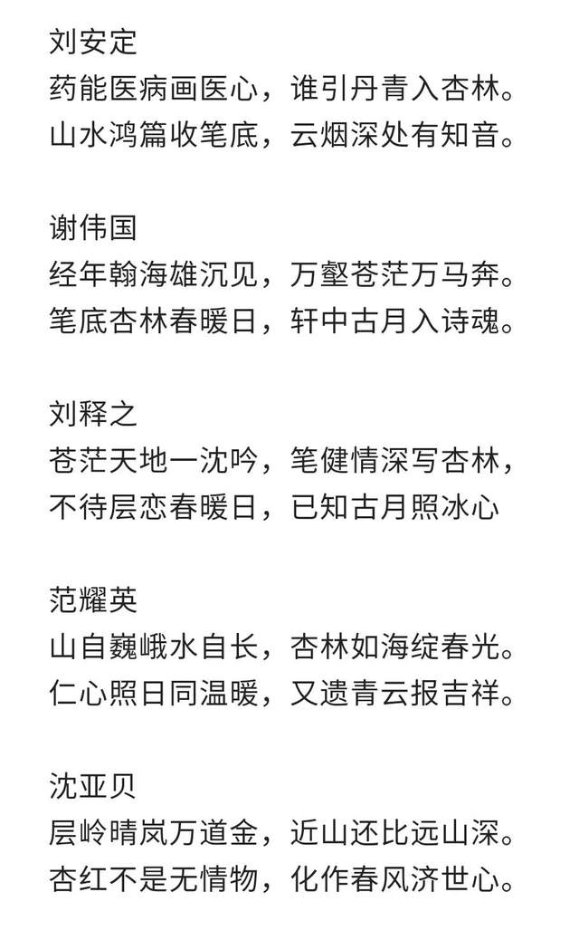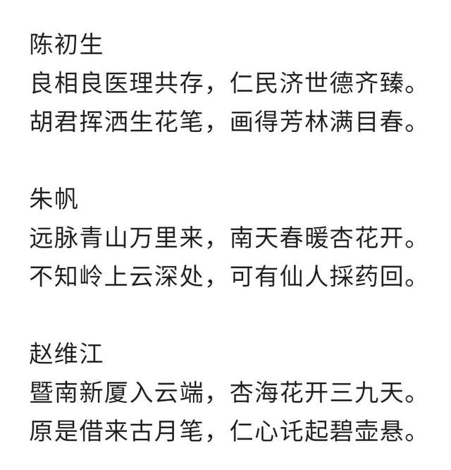 对于该画的影响力,不用胡江老师解释,许多文人骚客已经用文字做了回答。记者从网络搜寻到,广东诗人题赠“杏林春暖”就有八首诗词,名列如下: