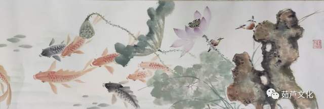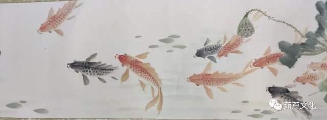 吕爱茹老师在谈到创作此作品的构思时说,采用的是以杨柳青年画连年有余的寓意来进行创作。其鱼的头部为鲶鱼头,预示着年年有余,鱼的身体是鲤鱼尾部用的是金鱼,预示着金玉满堂,吉祥如意。她说运河之水把我养大,家乡的父老乡亲给了我很多的荣誉和厚爱,我要把所学的一切全部奉献给我的家乡。用20米长卷表达对家乡的无限热爱。