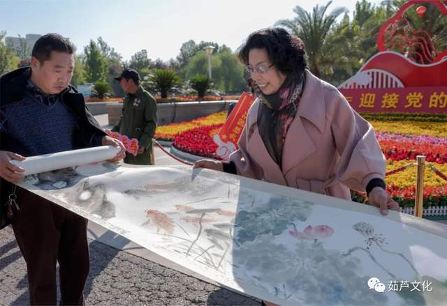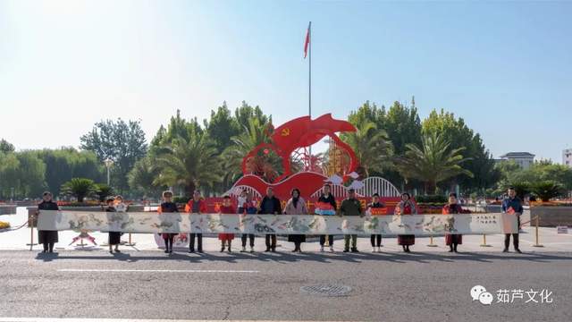 参加活动的西青区妇联主席戴薇薇,郭卫宏,刘培,杨柳青镇妇联主席潘考慧,杨柳青镇文化工作站刘雅娜主任等领导对吕爱茹老师的20米长卷和风细雨,情满池塘既《百鱼图》国画作品给予很高评价,并对多年来吕爱茹老师对西青区妇联工作及文化工作的支持表示感谢。参加作品展示的队员全部来自杨柳青本乡本土的乡亲们和英伦艺术团合唱团的队员,大家喜气洋洋,欢声笑语不断。英伦艺术团团长郭虹带领团队姐妹们参加了20米长的拍摄。
