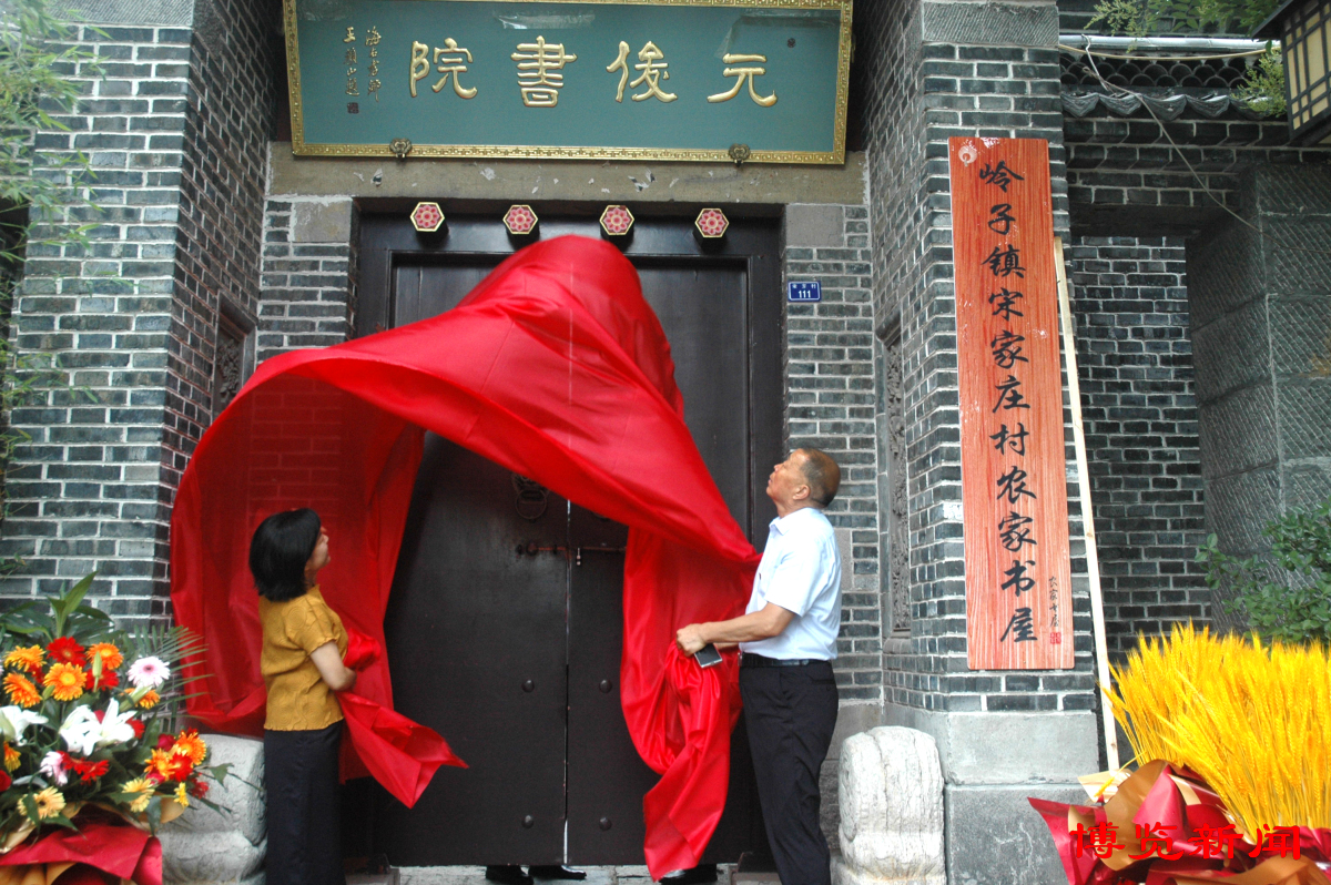 宋家庄村史馆紧邻元俊书院,原是贾木海董事长的承传祖宅,经他投资二百多万重建后捐献给了村里的文化公益事业。现在是一幢青砖白缝,古朴典雅的四合院。但见仿古门楼高悬《元俊书院》匾额,匾字是省级书法家王颜山大师来参观时亲题,《宋家庄村史馆》匾字则是淄川罗村人,原浙江省军区政委马以芝老将军落墨,大字行草,雄浑洒脱。院内几丛修竹连翠,檐廊古色古香,藏书馆藏书五千三百余册,阅览室四壁名画古帖,熠熠生彩,书法厅文房四宝,纸墨飘香,老游子们和周村区鸿雁的朋友纷纷挥毫留墨,我书“恋乡”二字以释情怀。