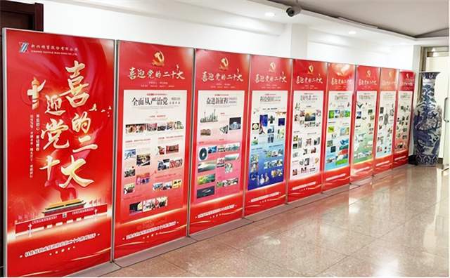 会前,党委工作部制作大型图板,展示出在全面从严治党、奋进新征程、科技强国、美好生活、美丽中国、军强才能国安、
