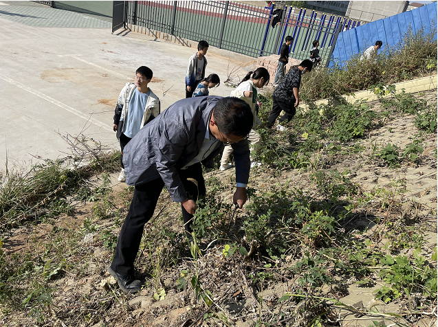 本次活动以班级为单位,划分具体的劳动区域,由年级负责领导和班主任带队,老师指导识别、讲解拔除杂草的方法。面对校园绿化带中的杂草,师生们发扬不怕脏、不怕苦、不怕累的劳动精神,认真清理,干劲十足,不放过一个死角。