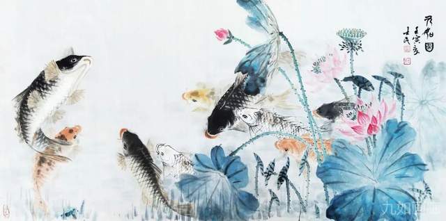 他笔下的鱼,功夫独到,刻画灵动自然,绚丽多姿,栩栩如生,真切动人,赋予鱼以鲜活优美的艺术生命,其作品深受社会各界的好评,被喜爱者誉为“济宁杨金鱼”。