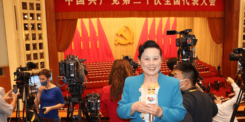 中外新闻社韦燕在人民大会堂报道全国代表大会开幕式