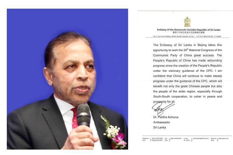 斯里兰卡驻华大使帕利塔•科霍纳博士祝辞:斯里兰卡驻华使馆借此机会预祝中国全国代表大会取得圆满成功。