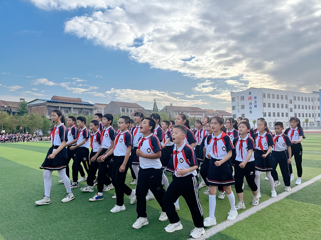 比赛中,同学们发扬不屈不挠、团结一致、奋发向上的精神,用整齐的步伐、 洪亮的口号、标准的动作、尽情地舞动着健美的身姿。各班同学们的口号响亮,气势磅礴,领着整齐的方队出现在主席台面前,展示着班级的最佳面貌。