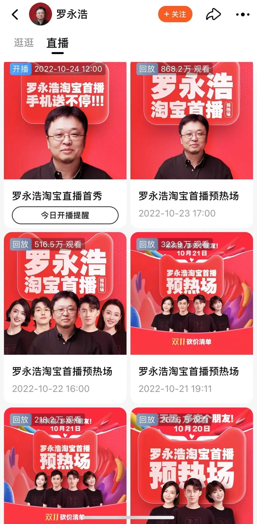根据市场的消息,今年整个双11周期,罗永浩直播会有三场,计划定在10月24日、10月31日、11月11日,分别对应着预售夜、开卖夜和双十一当天。但这个账号会每天开播,除了罗永浩以外,“交个朋友”旗下主播都会进行直播。