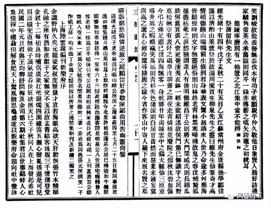 忆光绪己丑(15年,1889),仆分校秋闱,得卷激赏,荐呈西堂,以次艺有“天方回纥”字样,见摈。往争,前列不许,为惋惜者数日。迨拆黏名,则翰飞邹生,固名下士也!次年,得生《谢状》,辞藻沉博,吐属雅隽,愈信为读书而不徇流俗者……重惜其落落寡合,遇胡啬而文胡丰也!