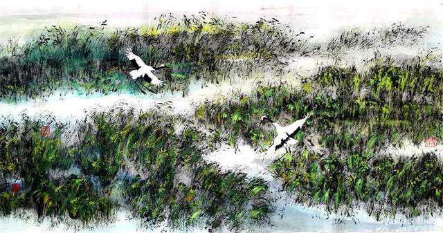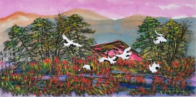 艺术家在技法上也不可能面面俱到,没有材质不能完成这样的效果,淡墨如果纸张材料不行,出不来意想不到的效果,道与技并重,甚至有时是技超越于道,达到超水平发挥的程度,出现“同自然之妙有”的效果,所以艺术的创作的技法与材料也很重要。像跳高运动员就是这样,两米二五是个高度,这个点就是世界纪录,运动员也不可能天天可以跳过这样高度。所以对于我们艺术家来讲,你要用你的技术要达到审美的高度,就需要“千锤百炼”“妙手偶得”。我们每个艺术家都有这样的体会,当你表现出这样满意的作品时就会有爱不释手的感觉。快适画法,美的艺术,都是通向艺术审美意境的,它只能是“合目的性”结果,虽然没有目的,却能到达人们共同欣赏的艺术审美要求。艺术家心灵不是仅有一种单一的修炼能提升的,而是靠多方面的综合因素,它才可以释放出艺术的能量。如你的线条里没有,我的线条里有就可以表现出来。所以,艺术家心灵的综合释放,能不能做到?现在就清楚了一个道理,画家吴冠中很多线条在技术表现上并不是所有都能到位,但是你仍然觉得他的画面精彩有神韵,有意境存在。为什么?这值得我们思考。油画也是这个道理,东西方艺术道理是相通的。这幅油画难道没有创意?优秀经典之作,是太随意,太理性化,太自由了,太可贵了。简洁的线条,坚定的自我,就一种色彩,某种意义上讲就是一个字:放—傲骨。这只有在艺术家快适笔下才会释放出来,前人没做到的我们今人敢不敢去尝试去做?康德所说的要有新的突破。今天我们还有手机的发明与创新,是值得思考研究的。但是艺术是要人们不断探索的,一个成功的艺术家绘画语言,那么简洁的线条笔墨语言,技术到底有多高?从视觉来看,从未有过这样的画法,艺术家的坚定、自信的作用就会显现出来,关键是自信。朱屺瞻、吴冠中、宋雨桂之所以敢这样做出前人没有做到的艺术,是因为他们在艺术审美创作上非常坚定,非常自信,自信就来自长期的审美积淀,如超前的艺术画面充满了美感形式,他们也都采用和借鉴了西方的艺术表现手法,体现出东西合璧的绘画艺术精神。