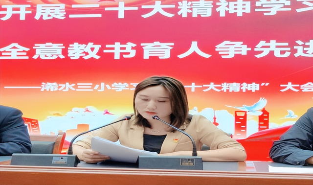11月3日,浠水县第三实验小学召开传达党的二十大精神专题大会,会议由党支部书记周婧主持,近160多名教职工参加本次大会。