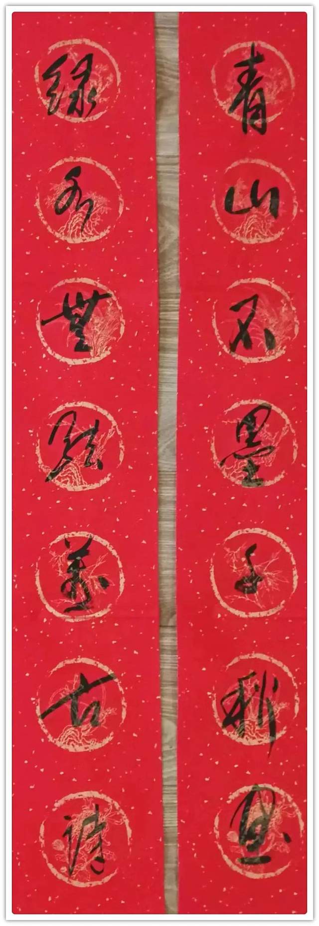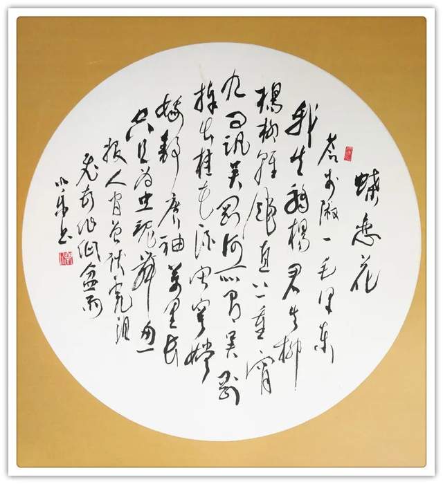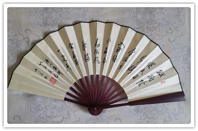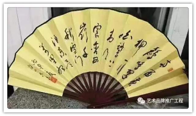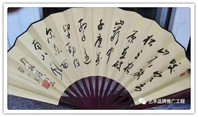 曾学过篆、隶、楷、行、草五体书法,以草书见长。其草书特点吸纳了大草线条流畅、小草结字清晰;避开了大草难认、小草势弱的不足。逐步形成了“笔断意不断、顺势而连”的草书个性写法。扇面书写方面,经过长期磨练,形成了不同于格式化的书写方法。根据扇子大小、形状、书写内容,顺势而为地进行个性化布局,实现草书书写的连贯性与整体的和谐统一。
