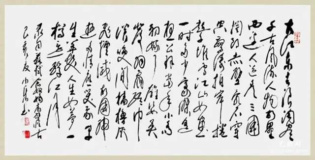 草书束缚性小,变化性大,最能体现书家的艺术构思、情感表达。白小乐将前人的书法技艺融入自己的创作中,不断探索属于自己的艺术特色。他的草书奔逸中有清秀之神,狂放中有淳穆之气,风流萧散,自成一格。白小乐不仅反对任笔为体,还反对任笔为篇,因而他的作品都是他审美的外化。在书法创作的同时,白小乐还对书法理论进行了总结,提炼出了自己的思考与追求,是理论与创作双丰收的书法家和书法理论家。