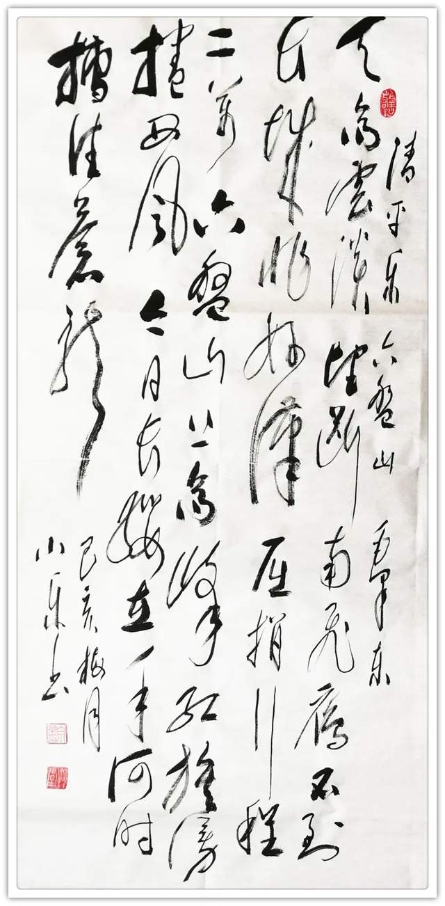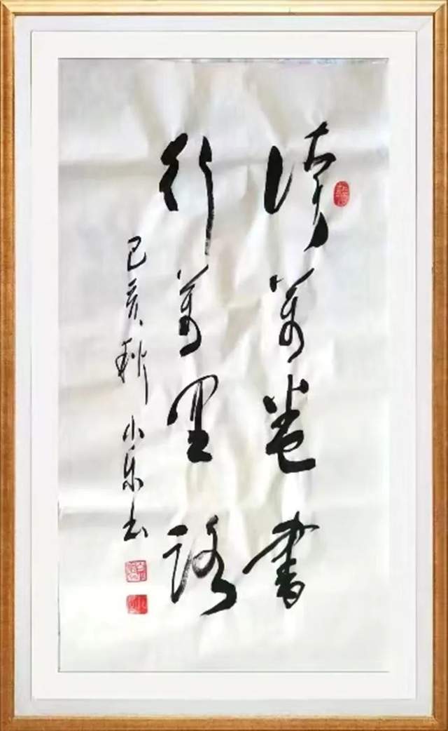 中国书法,是中华民族优秀文化的灿烂结晶。在中国书法的诸体书写艺术中,最具浪漫诗性和视觉表现力的则是草书艺术,草书线条开张超逸、变化莫测,仿佛涌动着书家的情感与心绪,是书家心灵世界的物化。书家的胸次、学识、涵养、追求等,在这跌宕飘逸、浑然一体的虚实变化中,一一呈现。欣赏白小乐的草书艺术,简直就是一种享受,一幅入木三分、力透纸背的书法作品犹如一首诗,一幅画,一曲音乐,不禁令你心怀敬意、叹为观止,给人一种美的享受、情的感悟。