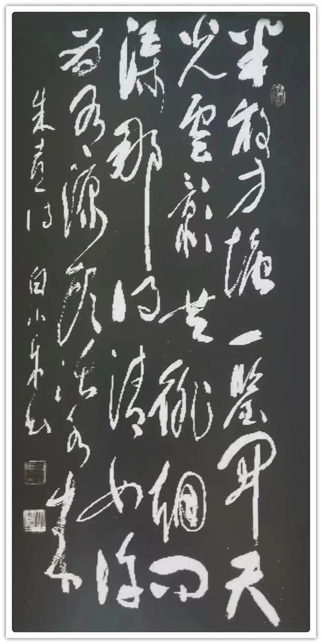 白小乐常讲,书法艺术是要从博大精深的传统文化中汲取丰富营养的。传统文化是中国书法的根基,书法艺术要发展、要创新,必须把根牢牢地扎在传统文化的土壤之中。因此学习书法,首先要了解书法背后的文化,理解书法艺术的精神内涵和它的奥妙,这样创作出来的艺术作品,其意蕴与境界才能不落俗套,才能步入中国书法艺术的大道。白小乐是这样说的,也是这样做的。他的草书以抒情性见长,有“散怀山水,悠然忘羁”的自然之趣。其作品中流贯出来的精神内涵与古人是一脉相承的。白小乐将个人对生命的感悟及对生活的热爱融于笔端,发纤秾于简古,寄至味于淡泊,寻韵外之雅致,求艺术之空灵,用摇曳生姿的笔致淋漓尽致地抒写心绪,在那线条变化莫测的黑白世界里,寄寓的不只是书家自身情怀和心胸,同时也融进了一个时代的精神。