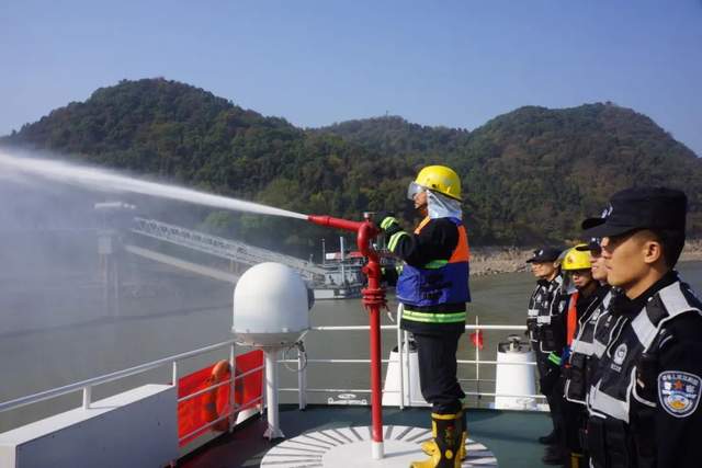 长江航运公安局黄石分局消防支队、黄石派出所联合黄石市消防救援支队王家墩中队、中石化黄石分公司西塞山油库等单位在黄石市西塞山水域西塞山油库1号码头开展消防灭火应急演练。