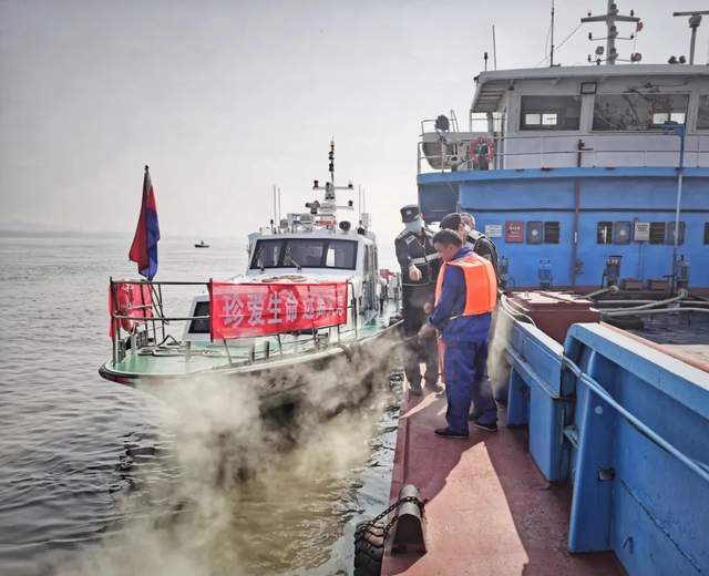 长江航运公安局黄石分局黄冈派出所民警前往辖区黄石新港码头、中长燃棋盘洲加油站、蕲春县龙全建材码头等码头开展安全检查,并在施工现场对工作人员进行了“送教进码头,警企保平安”消防安全宣讲活动,共出动警力5人、巡逻艇1艘,开展消防宣传30余人次。