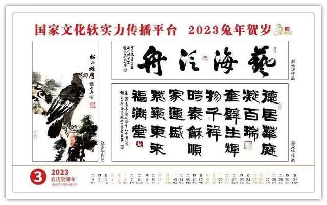 2022年11月由国家文化软实力传播平台特别应邀我同孙晓云、范迪安出版2023年官方贺岁台历《国之巨匠 · 泰斗艺术名家》三人台历由国家广电总局鉴制,人民出版社印刷50万册全球发放。
