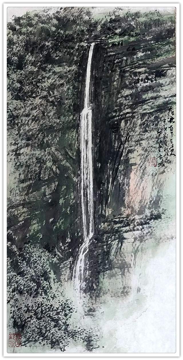 19、胡江 《飞流直下三千尺》68X34cm 2022