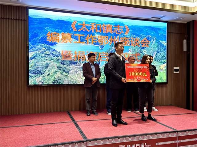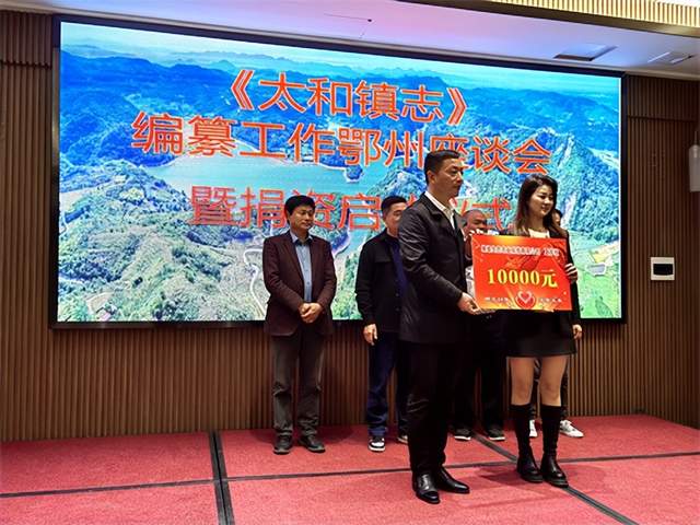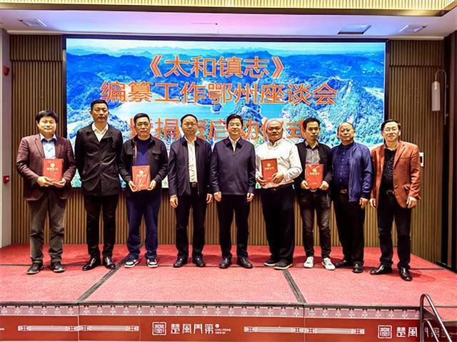 修志问道,垂鉴未来。11月12日下午,《太和镇志》编纂工作座谈会暨捐资启动仪式在鄂州楚风门第酒店举行。鄂州市委统战部副部长、工商联主席徐劲松,梁子湖区委常委、统战部长高爱明,区人大副主任、太和镇党委书记张学龙,区政协经济委主任柯岩,区委统战部常务副部长陈新州,太和镇党委副书记、镇长柯建设等领导出席座活动。