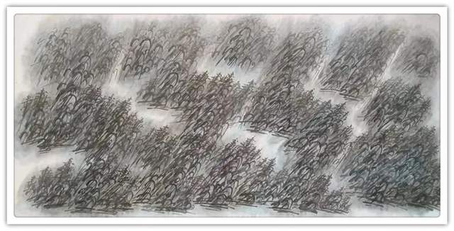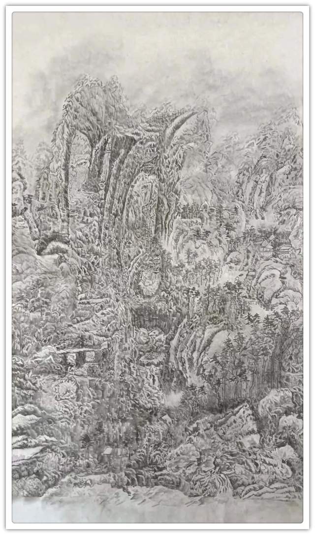 王静涛耐得十年艰辛与寂寞,悟得“一画”真谛并形诸笔端将书法入画,用行书和草书手法构成三维画面,富有灵动感,云蒸霞蔚,树摇水流,具有神灵意境。作画无皴擦之繁,道法自然,达到“无一不成万, 无万不成一”的境界。