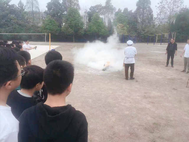 第一部分的案例分析是为了引起同学们对消防栓的高度重视,提高同学们的消防安全意识。最具有重要意义的是第二部分是消防实践演习的环节,该环节中,首先由该校分管安全工作的副校长朱清老师向同学们介绍了正确使用灭火器的方法,并做了演示。随后,通过模拟真实的火灾场景,由食堂阿姨代表和学生代表亲身经历,体验灭火的过程,掌握灭火器的正确使用方法。最后,在熊熊火光和烟雾弥漫中,我们结束了这次紧张严肃而又活泼有趣的消防演习。