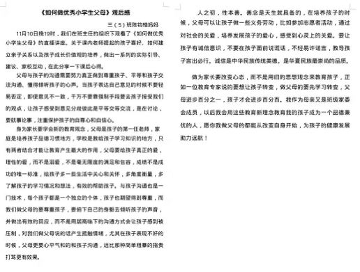 专家的高位引领为家长们的教育理念提供了更加科学的指引,为教育孩子提供了具体可行的方法指导,活动结束后,家长们表示受益匪浅,纷纷写下自己的感受与体会,并进行线上交流,相互启迪。