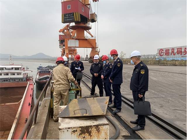 深入推进武汉都市圈水运监管一体化,实现船舶防污染共管。为减少船舶靠港期间大气污染物排放,保障船舶靠港安全规范使用岸电,11月16日,港航海事大队联合黄石海事局对湖北大通互联物流码头、金航码头、武钢球团矿厂码头、港鑫码头、超凡码头、长航鄂钢码头、三和管桩码头进行防污染检查,黄石海事局副局长黄振旺、支队党委副书记、港航海事大队大队长胡军参加。