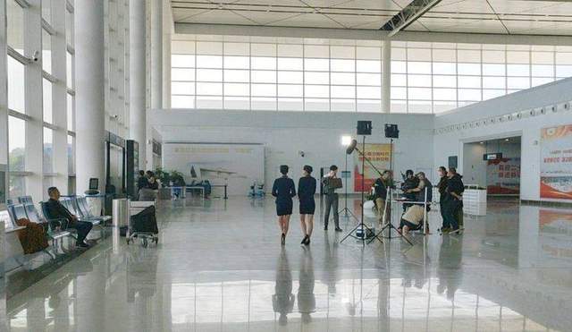 天空湛蓝,鄂州花湖机场客运楼在蓝天的映衬下,显得更加高端大气,机场这场戏在客运楼内拍摄。