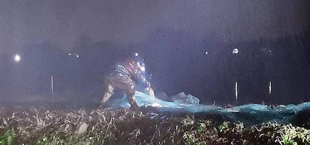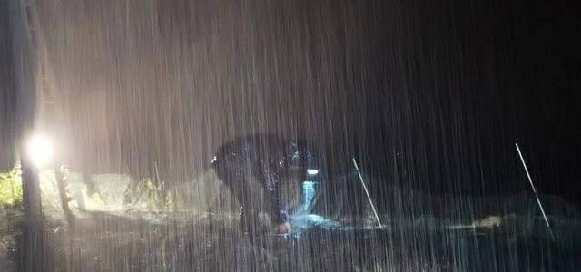 密集的雨,夜晚的寒气,不是一般的人能承受得住的。昌叔迎着大雨演出!
