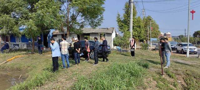 勘景进行中,此鱼塘为昌叔养鱼的鱼塘,工作人员们顶着烈日工作。