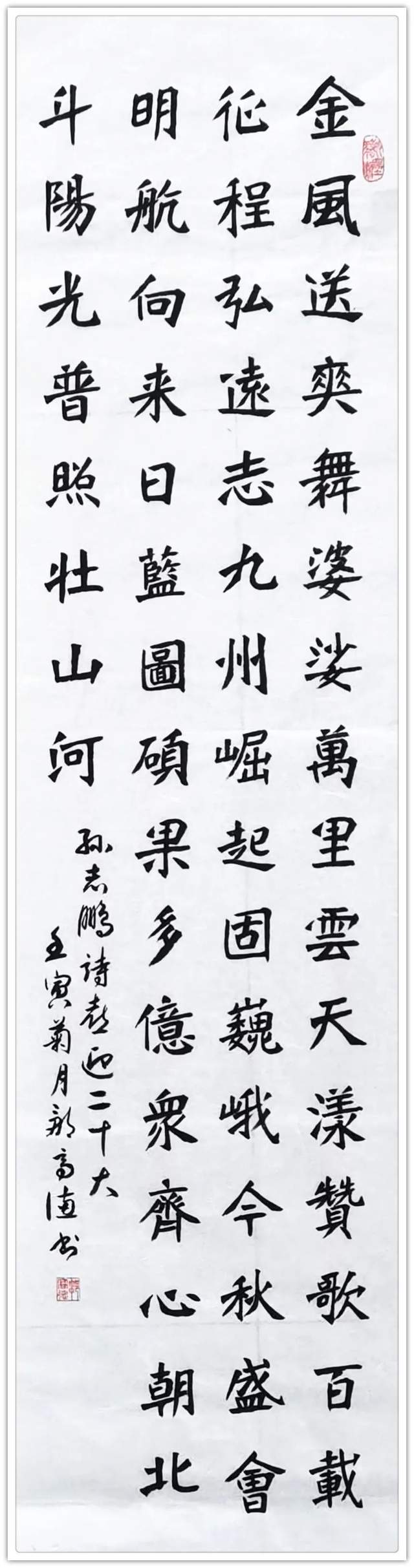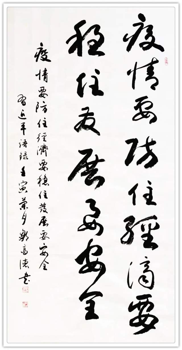取法兼备铸五体,翰墨功深至高格。从翰墨文化的发展视角上来看,今日邹高德先生的翰墨造诣无疑是有为我们带来一种全新的文人气息,而这种文人气息既是来自于他对传统法脉的高度汲取,同时也是来源于他对翰墨本质的深度体悟,以笔墨带动观者视觉,以书风呈现真实写照,成篇作品不失严谨,少字作品不失正气,此真是谓刚柔相济并举一脉,血肉丰满自然天成也!