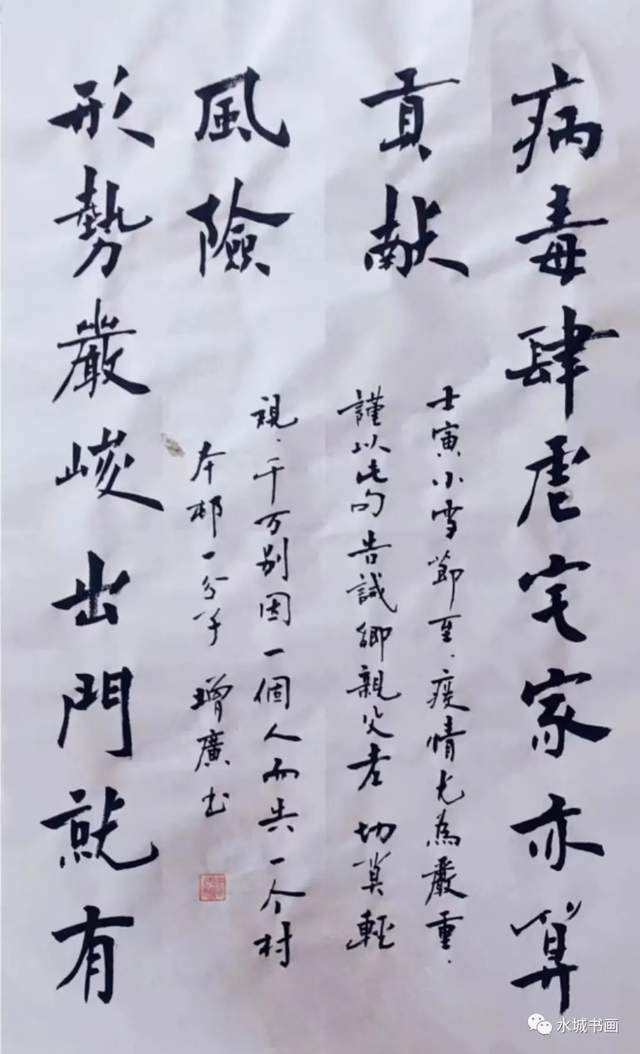当前,我市疫情严峻复杂,为全力支持配合防控工作,聊城市书画研究会全体会员特殊时期拿出特殊精神,体现特殊担当,迅速开展以疫情防控为主题的书画创作活动,用深情的笔墨书写心声,提振全市人民战胜疫情的决心和信心,凝聚战胜疫情的磅礴精神力量,“艺同抗疫,勇毅前行”,一起打赢这场疫情防控阻击战、清零战。