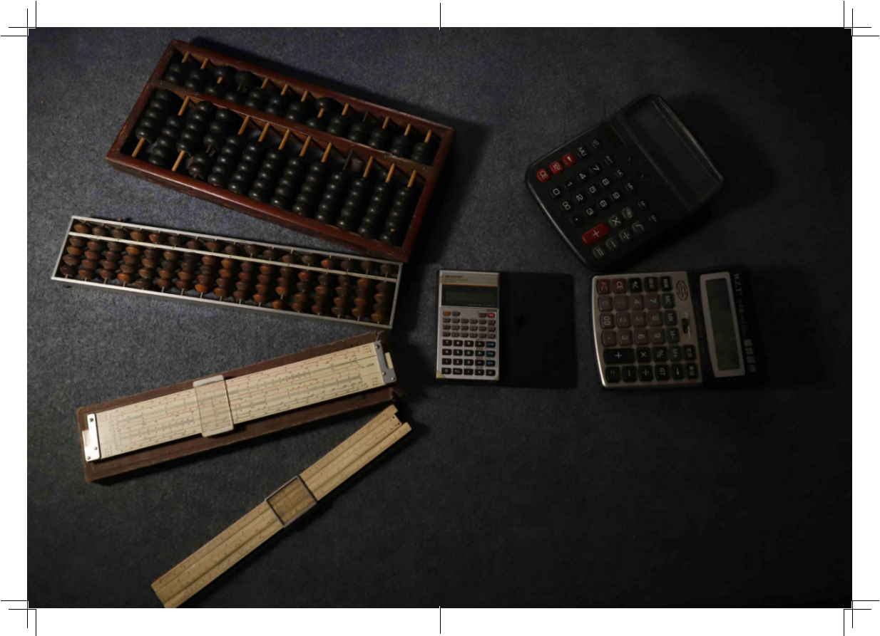 随着科技的发展,不光算盘丧失了大规模应用的土壤,计算器也日渐式微,走下坡路。生活中,我老伴要算个账的时候,也已很少用计算器了,而是随手摸过手机,使用上面的计算器。后来,我把两代人都使用过的老算盘放进了博物馆里。2015 年一天,我中学时代的王建宗老师把他父亲王英( 解放前北京大学的教授)使用的一个计算尺和他当年在省委政策研究室时使用的一个计算器也送到我的家庭博物馆里。盛放计算器的皮夹子里还夹着一张纸条,上面记着一个复杂的计算公式,这是当年王建宗老师用来计算全省年经济增长率的。