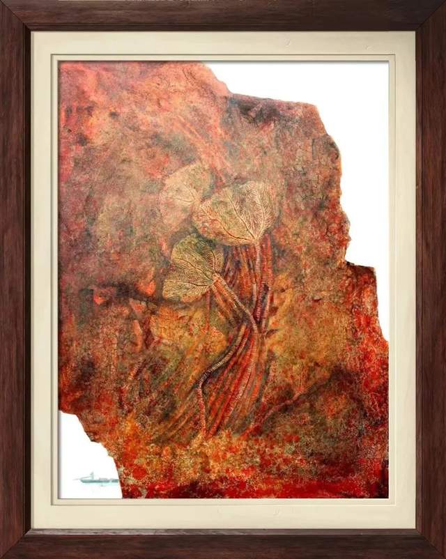 海百合是一种具有科研价值,考古价值和艺术价值化石群,它那千姿百态和五彩缤纷的色彩让我时刻都在创作的激情中,如能够把它用绘画的形式来表现更能提升到另一种审美,特别是用岩石矿物质颜料来创作更能达到艳而不俗,更有视觉冲击力,又使它不只停留于原化石视觉中,又能表现它的最终生命过程,如在溶岩中的挣扎,海水中游离,干旱中的绝望,寒冷中的不适等等……