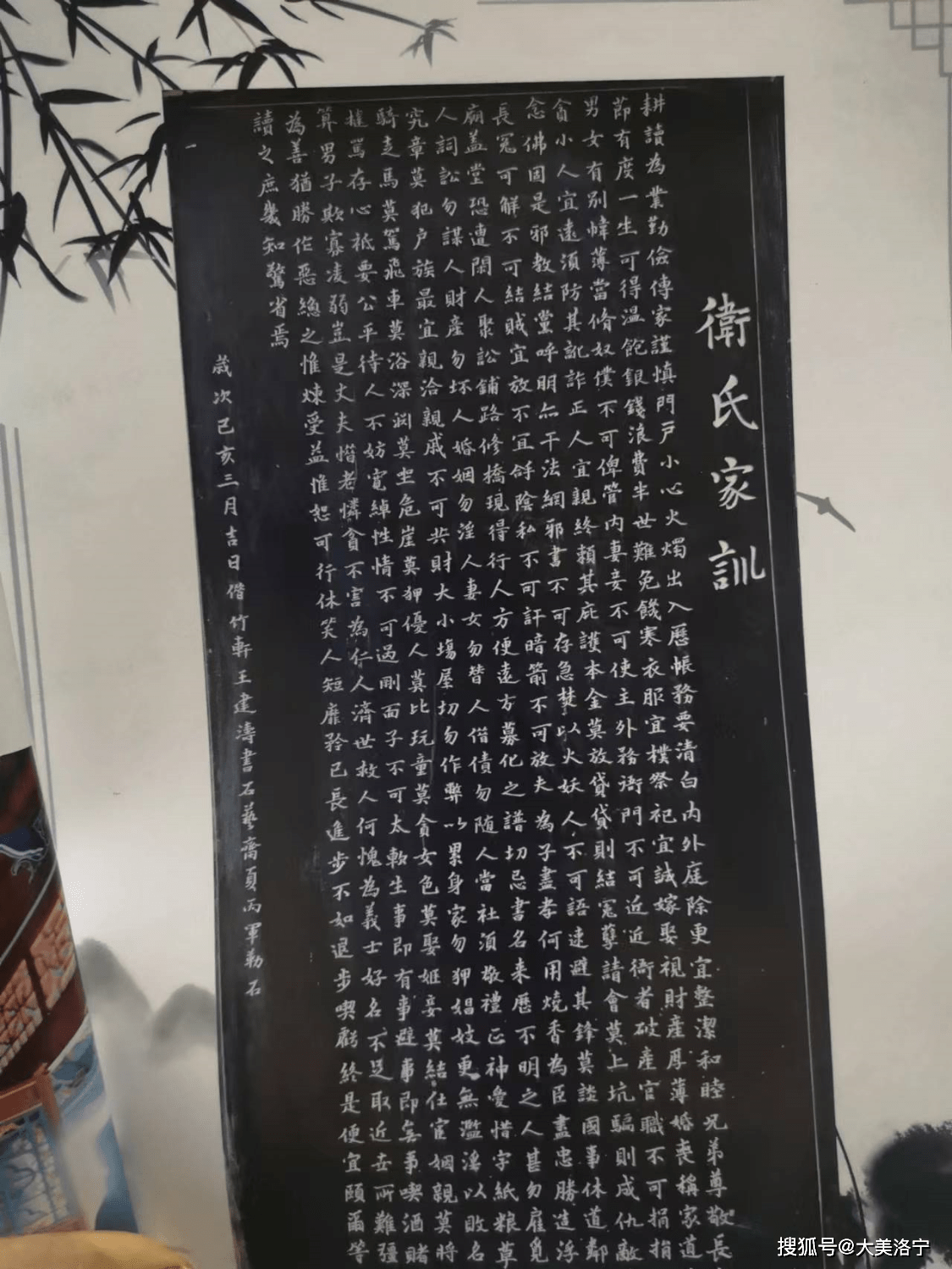 卫氏家训碑立于小界卫凹村卫氏家庙内,收录在卫凹新家谱中,读罢令人震撼,动容、泪目。我们仿佛看到这么一幕:一位长者离世前召集自己的子女于病床前,一字一句,事无巨细,不厌其烦,艰难地对自己的孩子做最后的叮嘱,这是一位老人一生的经验总结,然后才放心地闭上了眼睛。