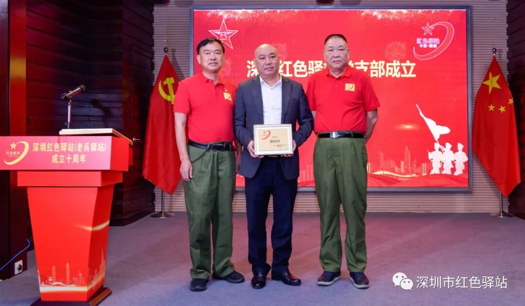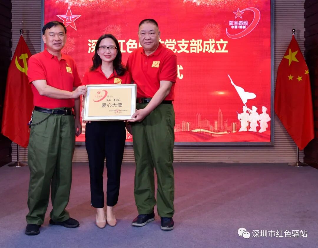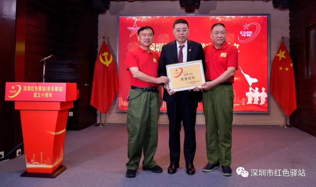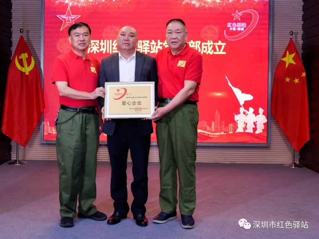 授予:深圳市大通高新科技发展有限公司为红色驿站爱心企业称号;深圳市大通高新科技发展有限公司董事长陈俊哲先生红色驿站副站长荣誉称号;