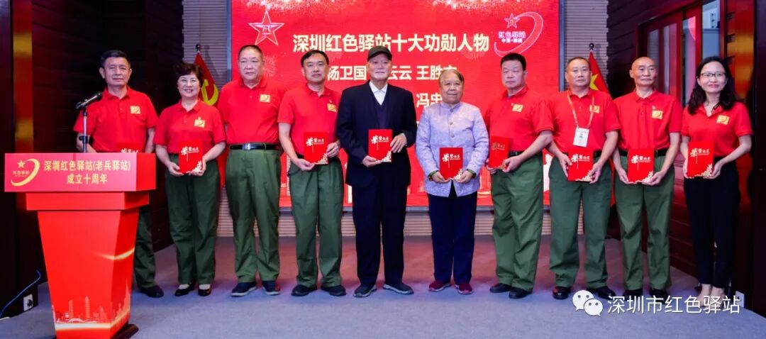 授予:深圳市拓荒史研究会创会功勋会长、深圳市退役军人关爱基金发起人、轮值主席、深圳红色驿站总顾问刘坤德;拓荒史研究会会长、深圳市洲际通实业发展有限公司董事长、葵花公寓酒店“拓荒牛红星堡垒户”户主、红色驿站顾问黄干达;香港中道集团董事长、香港大湾区金融科技促进总会会长、深圳市政协委员、红色驿站荣誉站长荘紫祥、红色驿站江西景德镇分站站长江汉清;深圳市菉华半导体有限公司董事长张羽;深圳市亿诺家私董事长刘建英;原00019部队战友联谊会常务副会长、红色驿站名誉站长顾世增;深圳市文华音乐中心理事长刘代禄;深圳市大通高科技有限公司董事长陈俊哲;深圳市观赏石文化艺术协会党支部书记、红色驿站宣传部长卢兴求等10名同志为情系驿站,无私奉献的十大爱心人物;