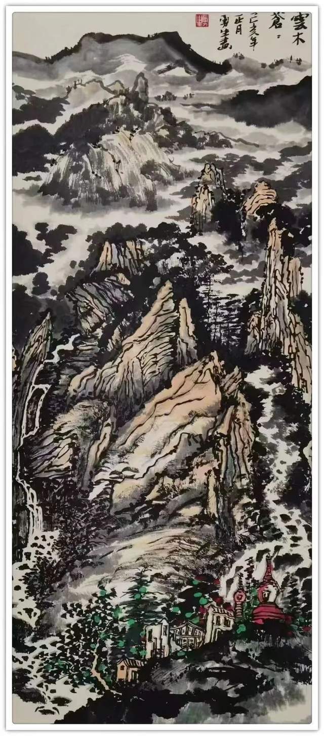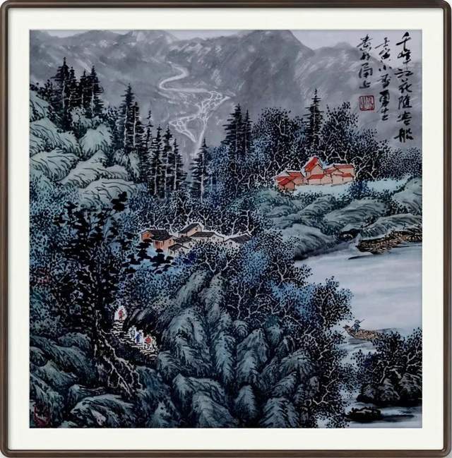 在作品的创作上,蒋勇生先生是从不拘泥于单一的画面规格,而是任何画面尺幅都能够全面把握,是可绘以大幅之作,也可绘以小品之作!当然,在这些画面尺幅中所表现出的山水气象,也同样是不完全局限于山川之景,像民居村落和小桥流水的怡情景致亦是极其丰富!也正因如此,经由蒋勇生先生所绘作的众幅丹青作品也才会呈现出那雅俗共赏的审美格局,观之是谓广博妙境而又意趣横生!